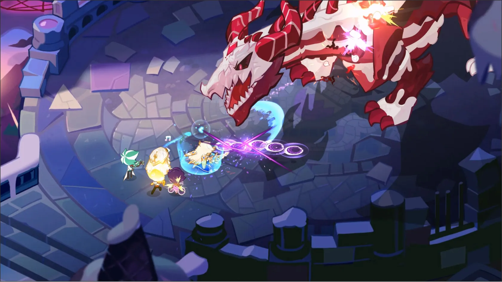 Diverse team combinations, Toppings, and Treasures! Mix and match to create a solid strategy and repel Dark Enchantress Cookie's forces of evil.