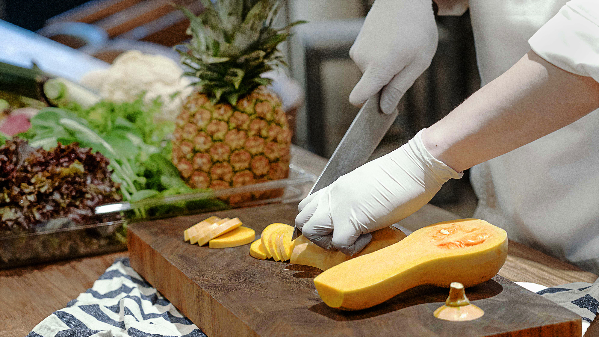 건강한 식단의 기본인 식재료는 친환경으로 재배되었는지를 꼭 확인하고 있습니다. 구성원이 가장 많이 섭취하는 쌀은 친환경 우렁이 농법으로 재배한 무농약 쌀을 기본으로 영양 성분을 고려한 5분도미(五分搗米)나 현미를 함께 사용하고 있습니다. 샐러드와 샌드위치의 경우 무농약, 무경운, 무비료 3무(無) 농법을 이용한 야채를 매일 아침에 받아 신선하게 조리하고 있죠. 그뿐만 아니라 식재료에서 유기농의 비율을 높이고자 다양한 방법을 지속적으로 시도하고 있습니다.