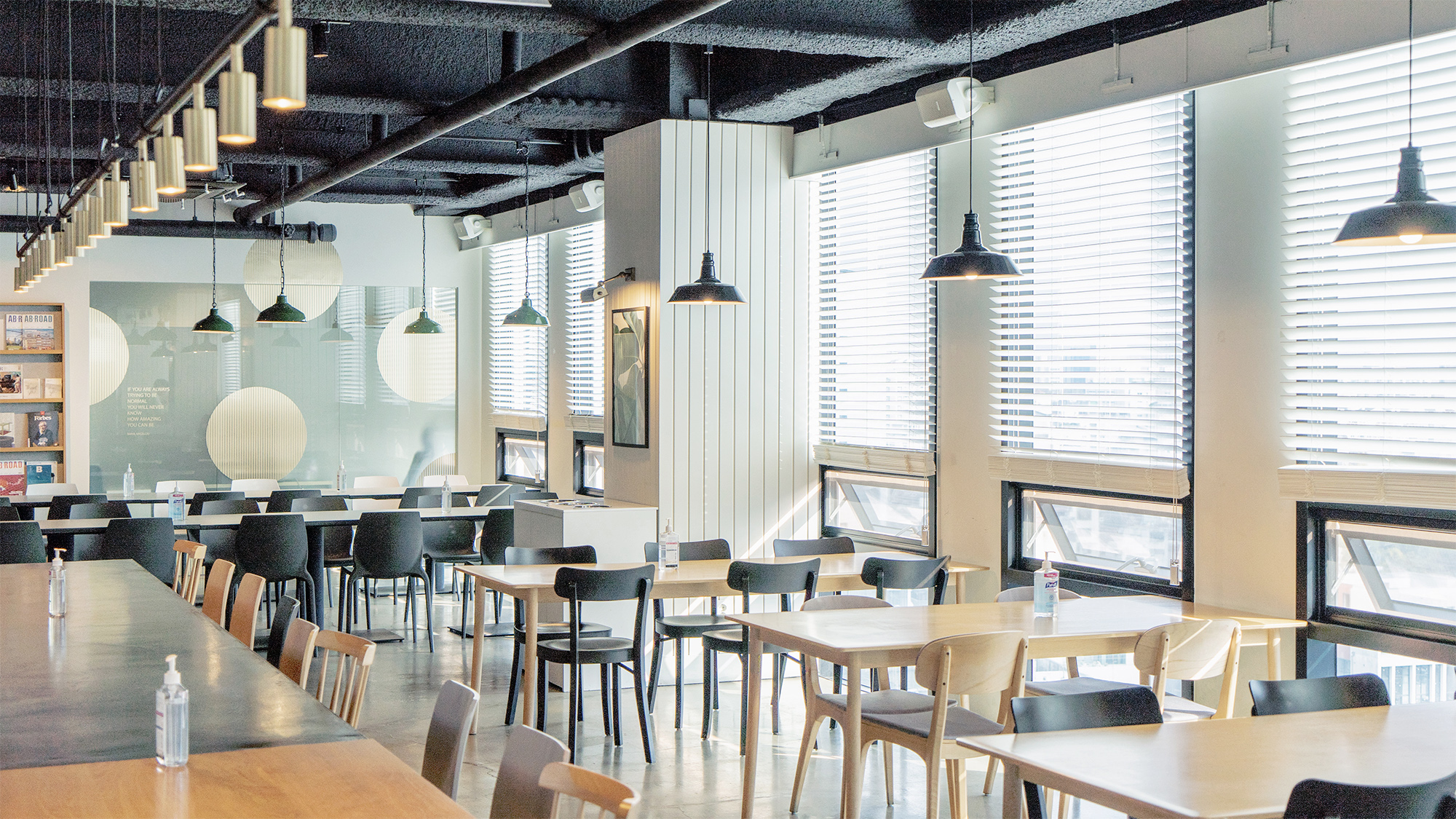 따뜻한 조명 아래 우드 소재의 테이블, 푸른 식물들로 둘러싸인 푹신한 소파, 따스한 날씨를 즐길 수 있도록 준비된 야외 테라스는 STAGE 2를 방문하는 구성원들의 마음에 생기를 불어넣어 줍니다. 또한 식사 시간이 아니더라도 항상 열려 있기 때문에 구성원들은 언제나 편하게 방문하여 책을 읽기도 하고 창밖을 보면서 휴식을 취하기도 합니다.